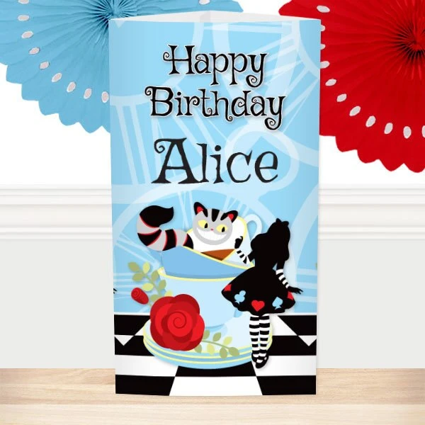 Elevate the vibe of your party with the Alice in Wonderland Birthday Editable Centerpieces by Birthday Direct. This is a digital template that you can download and customize using Canva, Adobe Acrobat, or other PDF editors. You can open the template directly in your web browser without special software. Once done editing, you can save it in various formats, including JPG, PDF, SVG, or PNG. You can print it at home, through Canva, or a professional printing service. The Alice in Wonderland Birthday Editable Centerpieces are part of Birthday Direct’s Alice in Wonderland Collection.