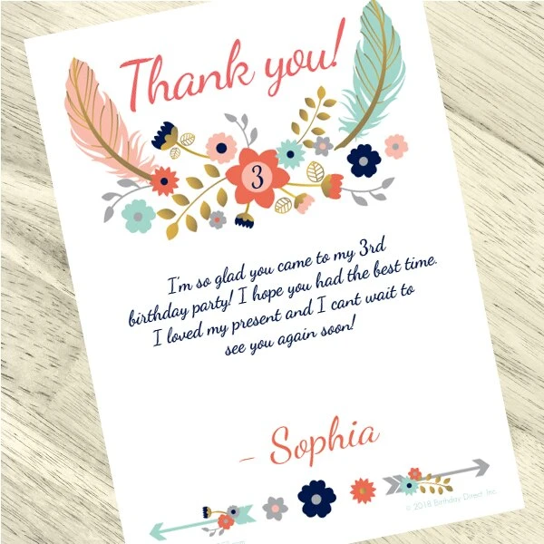 Boho 3rd Birthday Thank You, 5×7-inch, Editable Digital Template