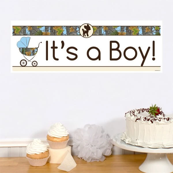 Camouflage Blue Baby Shower Small Banner, Editable Digital Template