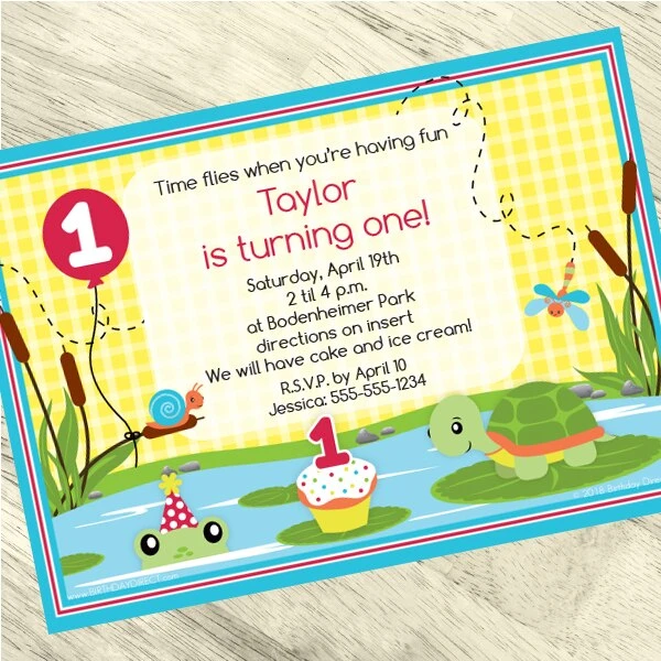Frog And Turtle 1st Birthday Invitation, 5×7-inch, Editable Digital Template