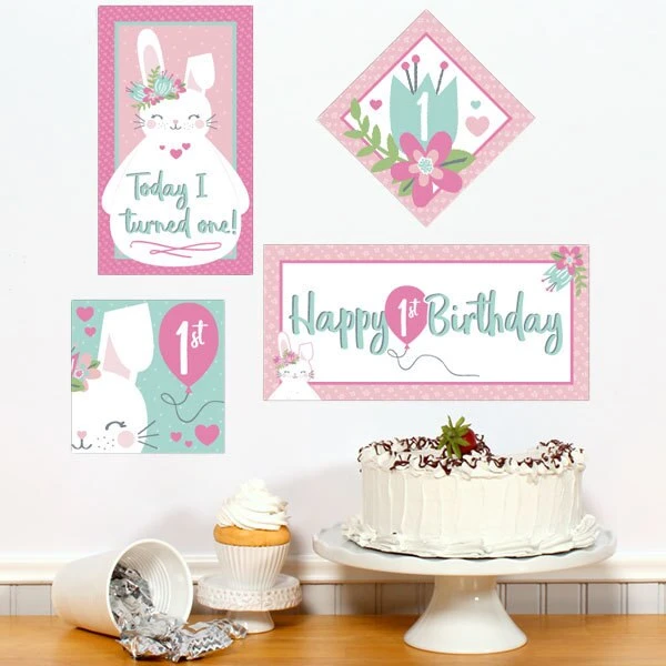 Decorate your party walls with the Little Bunny 1st Birthday Signs Cutouts Wall Decorations by Birthday Direct. This is a digital template that you can download and customize using Canva, Adobe Acrobat, or other PDF editors. You can open the template directly in your web browser without special software. Once done editing, you can save it in various formats, including JPG, PDF, SVG, or PNG. You can print it at home, through Canva, or a professional printing service. The Little Bunny 1st Birthday Signs Cutouts Wall Decorations are part of Birthday Direct’s Little Bunny Collection.