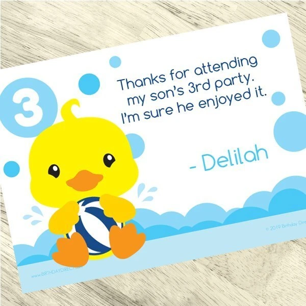 Little Ducky 3rd Birthday Thank You, 5×7-inch, Editable Digital Template