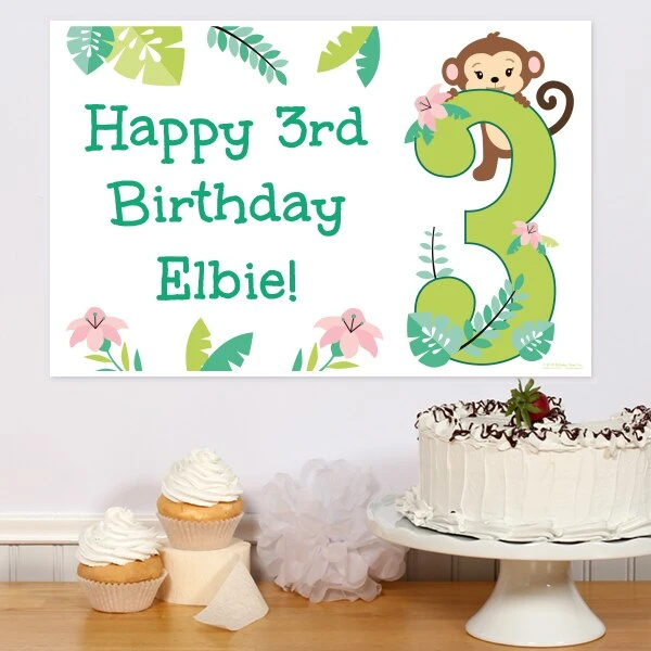 Little Monkey 3rd Birthday Sign, 8×10, 16×20, Editable Digital Template