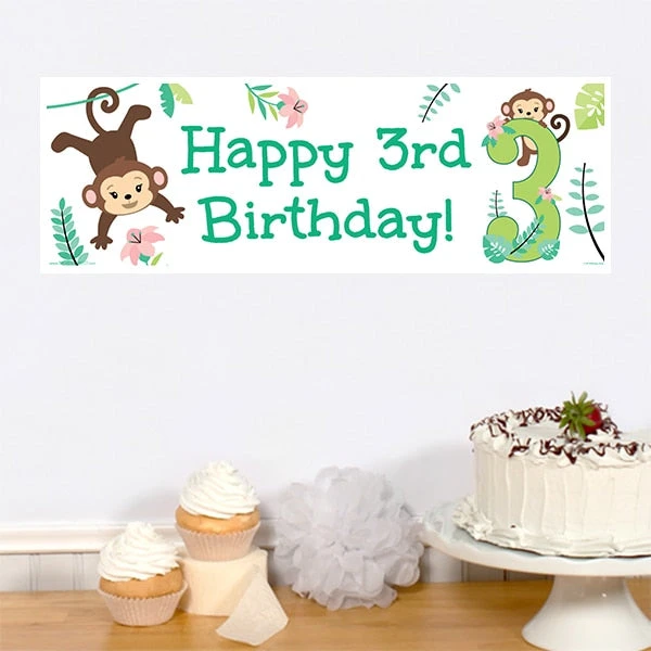Little Monkey 3rd Birthday Small Banner, Editable Digital Template