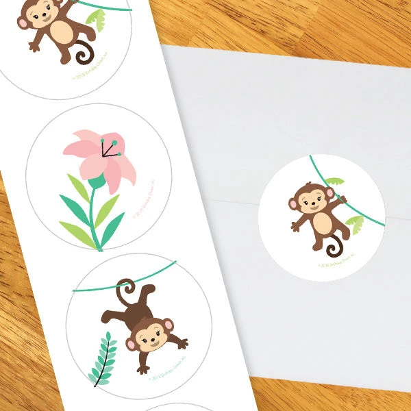 Little Monkey Party 2-in Circle, Editable Digital Template