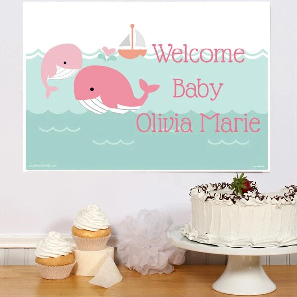 Little Whale Pink Baby Shower Sign, 8×10, 16×20, Editable Digital Template