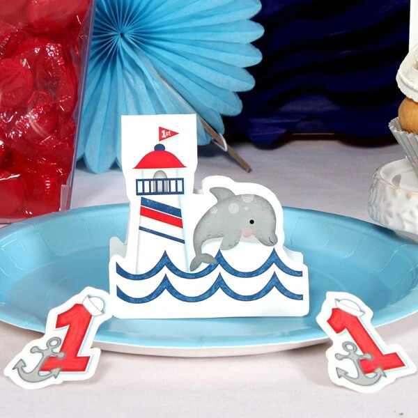 Nautical Dolphin 1st Birthday Table Decoration, Editable Digital Template
