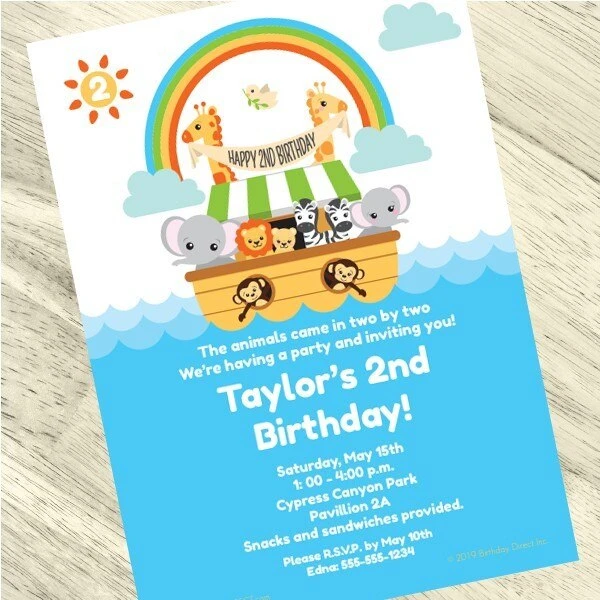 Noah’s Ark 2nd Birthday Invitation, 5×7-inch, Editable Digital Template