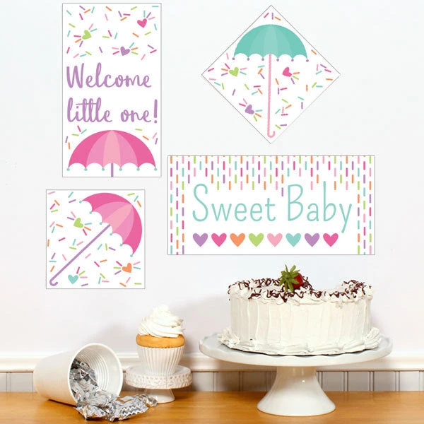 Decorate your party walls with the Sprinkle Baby Shower Signs Cutouts Wall Decorations by Birthday Direct. This is a digital template that you can download and customize using Canva, Adobe Acrobat, or other PDF editors. You can open the template directly in your web browser without special software. Once done editing, you can save it in various formats, including JPG, PDF, SVG, or PNG. You can print it at home, through Canva, or a professional printing service. The Sprinkle Baby Shower Signs Cutouts Wall Decorations are part of Birthday Direct’s Sprinkle Collection.