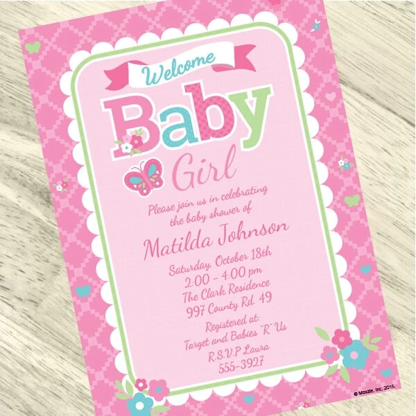 Welcome Girl Baby Shower Invitation, 5×7-inch, Editable Digital Template