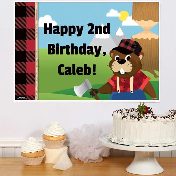 Woodland Lumberjack Beaver Party Sign, 8×10, 16×20, Editable Digital Template